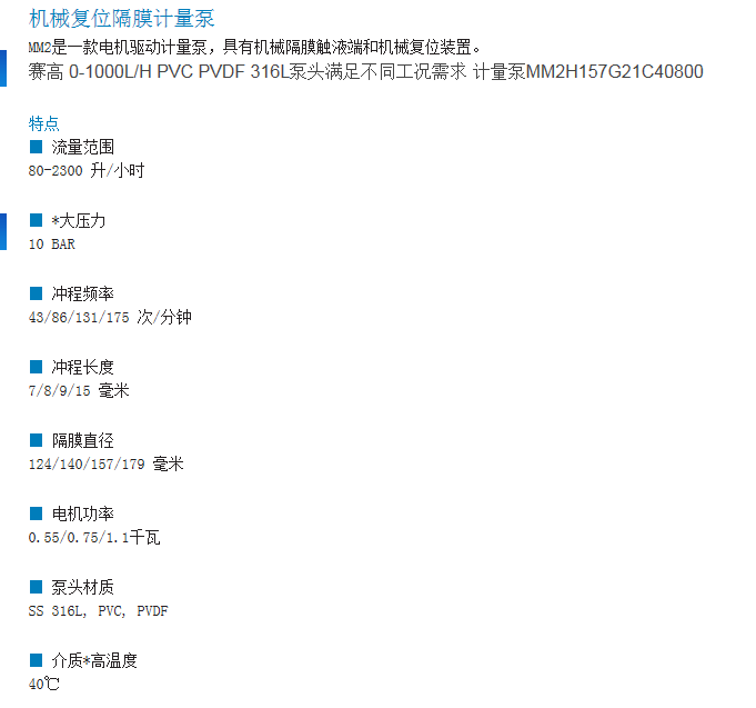 seko賽高M(jìn)M1系列PVC/PVDF/不銹鋼泵頭大流量機(jī)械復(fù)位隔膜計(jì)量泵