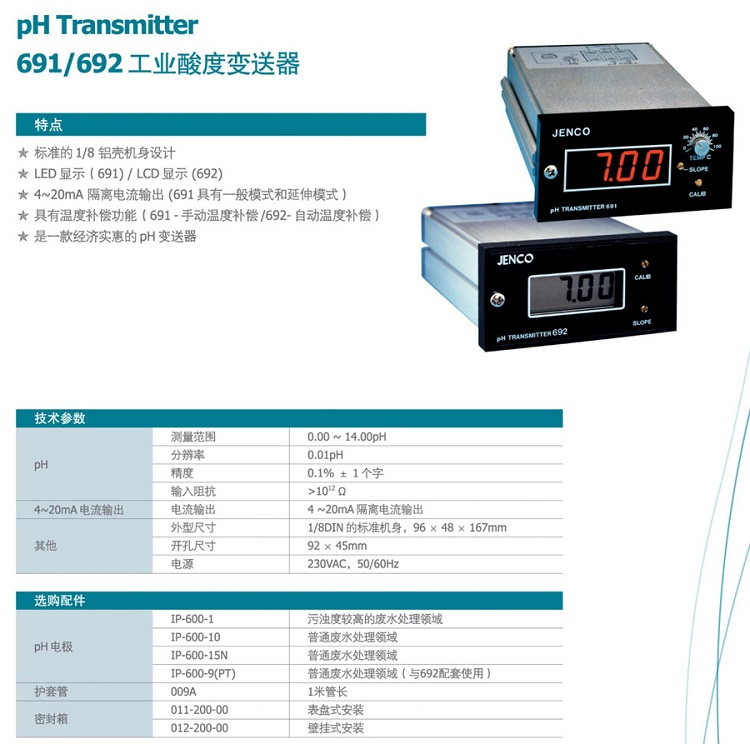 (JENCO/任氏)在線PH變送器692(單機)