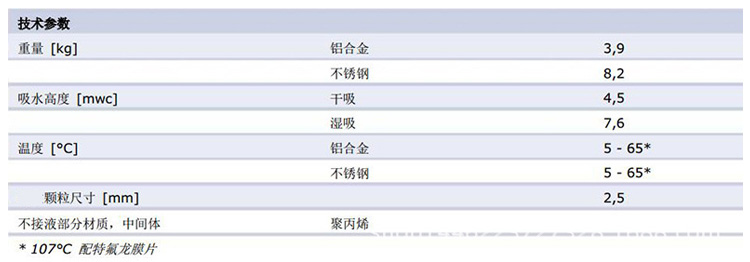 自吸高度  dry 4,5 m WC