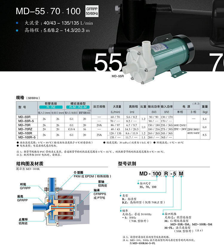 【IWAKI】易威奇磁力泵MD100-RM耐磨GFRPP材質(zhì)磁力驅(qū)動泵藥液輸送水泵