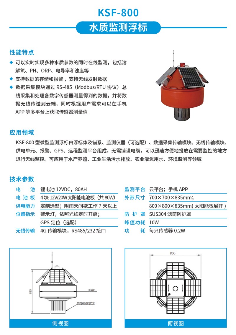 Apure水質(zhì)監(jiān)測(cè)浮標(biāo)KSF-800水產(chǎn)養(yǎng)殖河道多參數(shù)水質(zhì)在線檢測(cè)傳感器