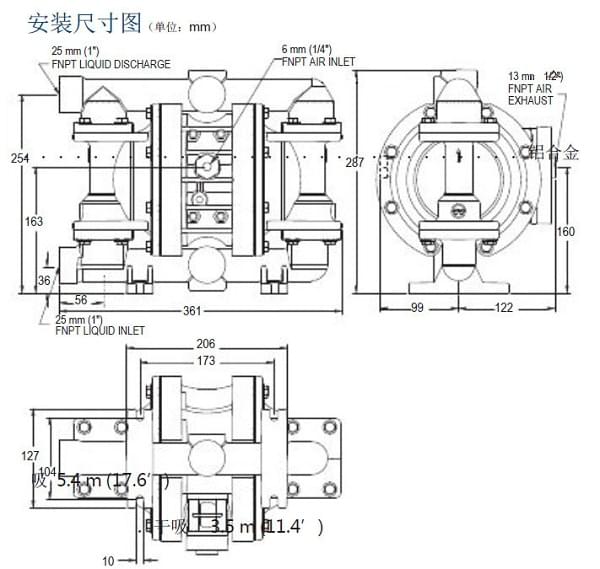 接液部和外壓板材質:不銹鋼 空氣腔:聚丙烯 中間體:聚丙烯 隔膜:特氟隆帶氯丁橡膠